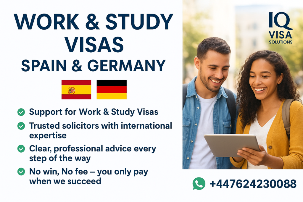 At IQ Visa Solutions, we make your journey smoother with the help of experienced solicitors from the UK, Spain, and Germany. Whether you’re planning to build your career abroad or pursue your studies, our team provides clear, reliable guidance for your visa application.